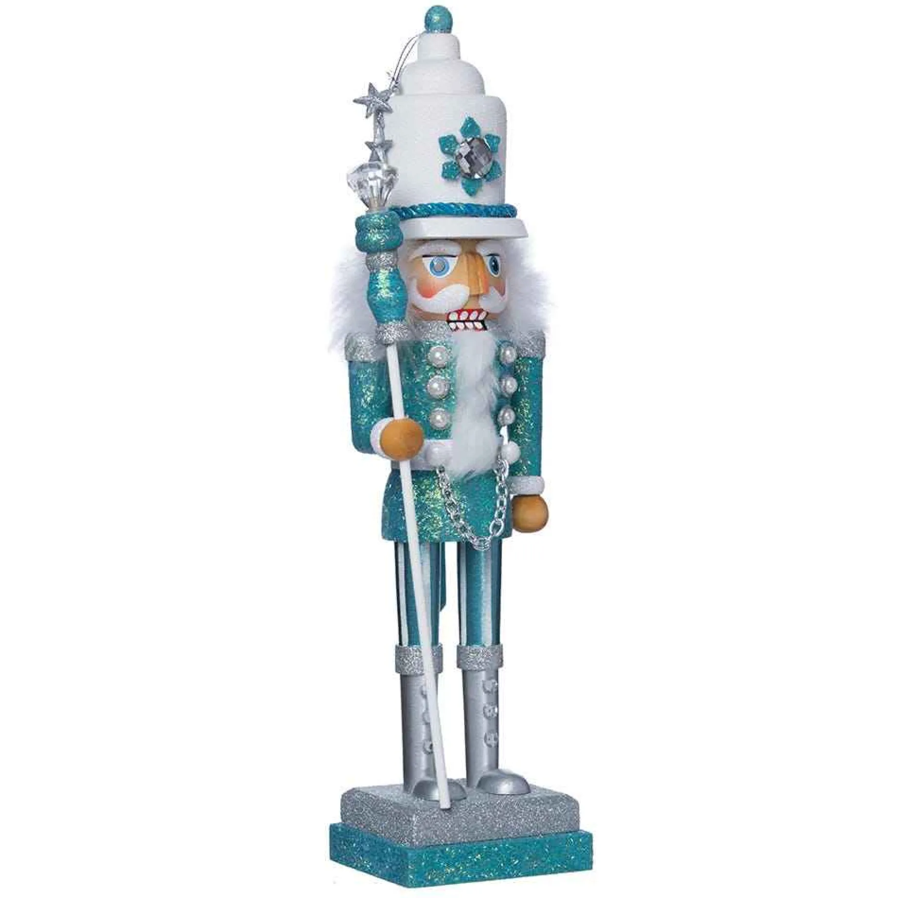Designed By Renowned Artist Holly Adler, Hollywood Nutcrackers Is A Whimsical Collection Of Nutcrackers Created Exclusively For Kurt S. Adler, Inc. And Features A Variety Of Designs Including Christmas, Fantasy, And Everyday Nutcrackers. Their Designs Put A Unique, Vibrant, Memorable Twist On Traditional Nutcrackers. This 17″ Nutcracker By Kurt Adler Has A Wonderfully Wintry Turquoise And White Design And Color Scheme. Extra Special Details Include Snowflakes And Stars On His Hat, And A Regal Gem-Topped Staff.