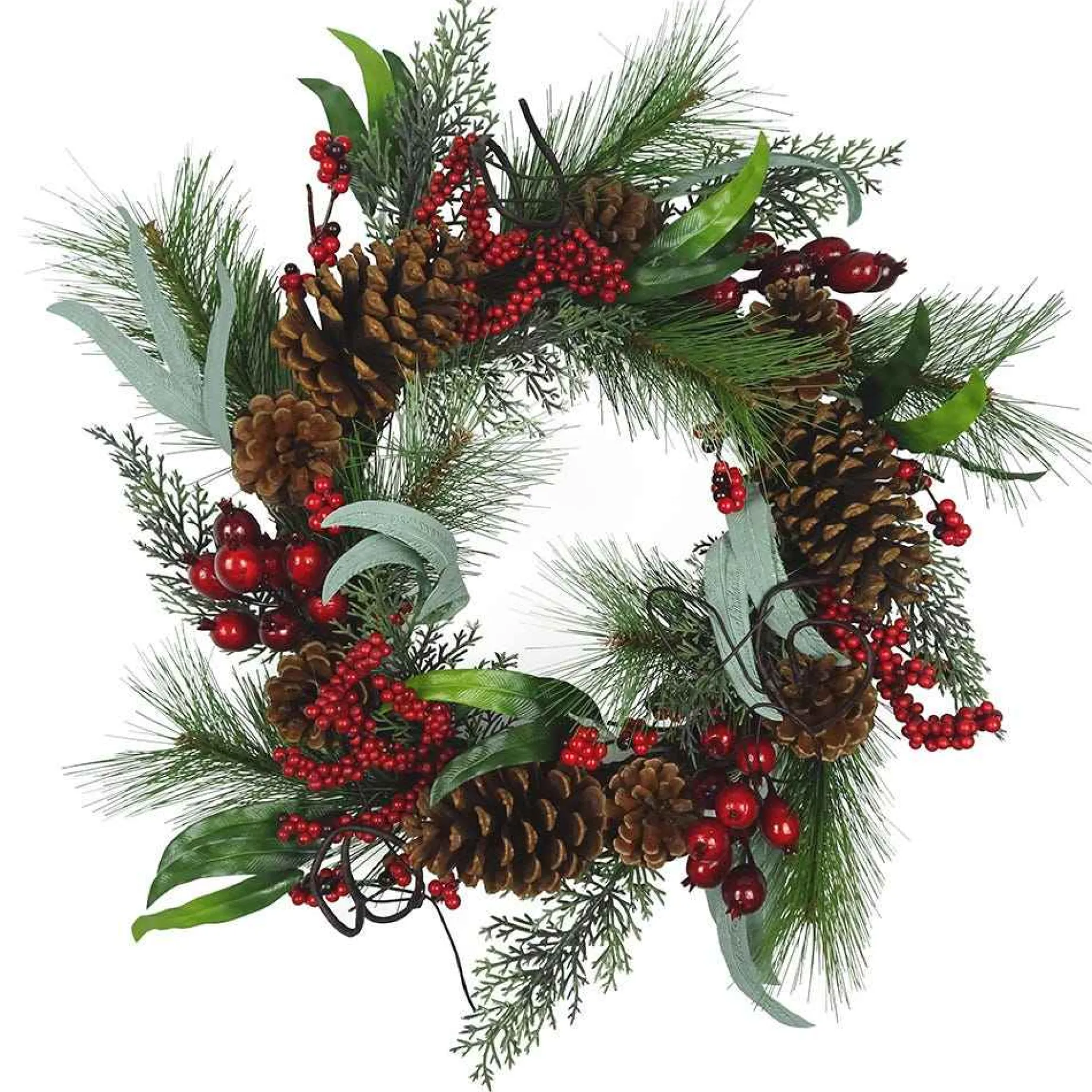 Kurt Adler 20-Inch Wreath With Red Berries, Leaves And Pinecones