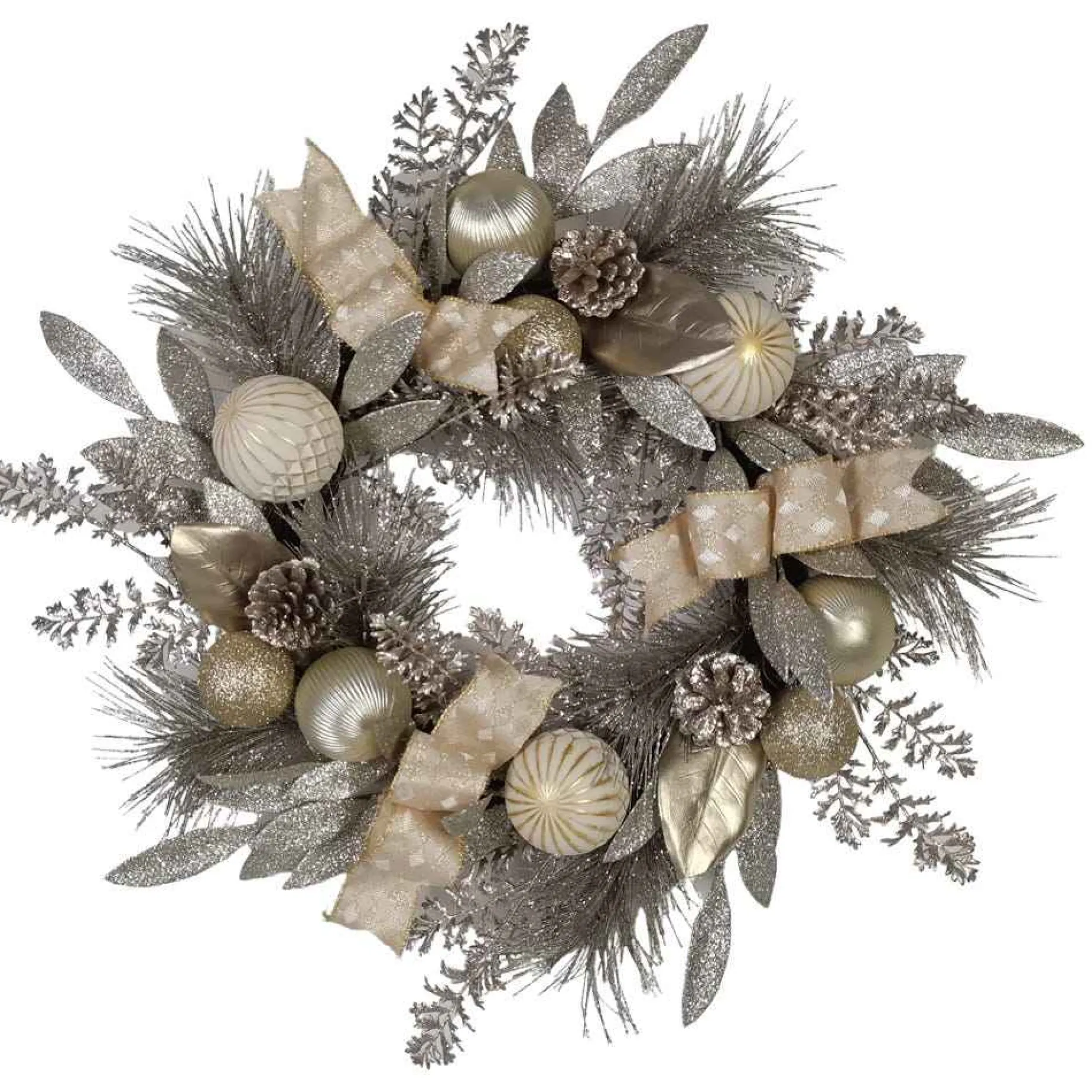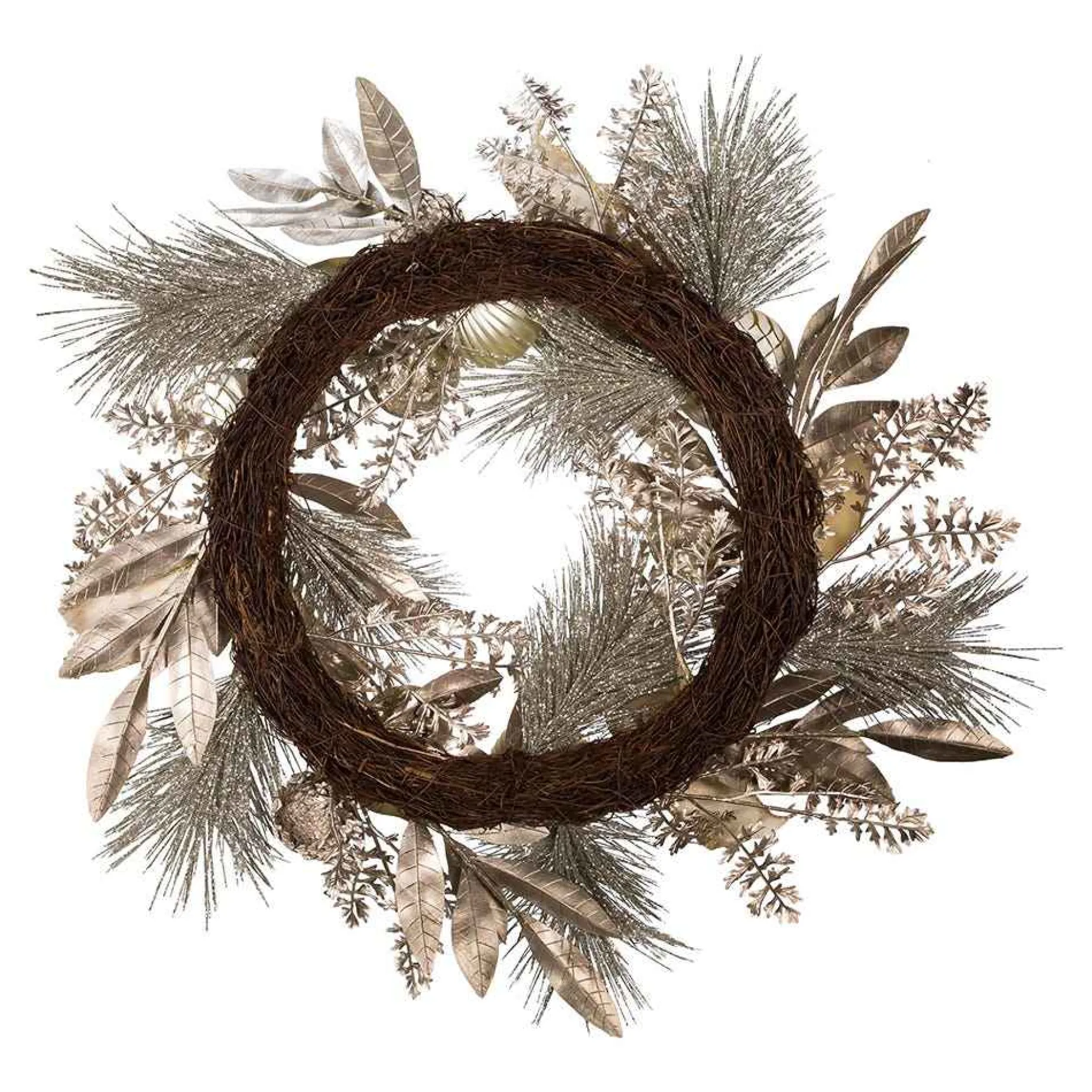 Kurt Adler 24-Inch Silver And Gold Champagne Rattan Wreath