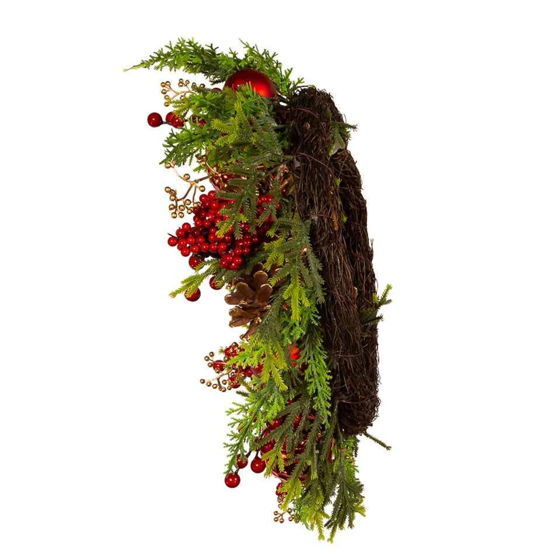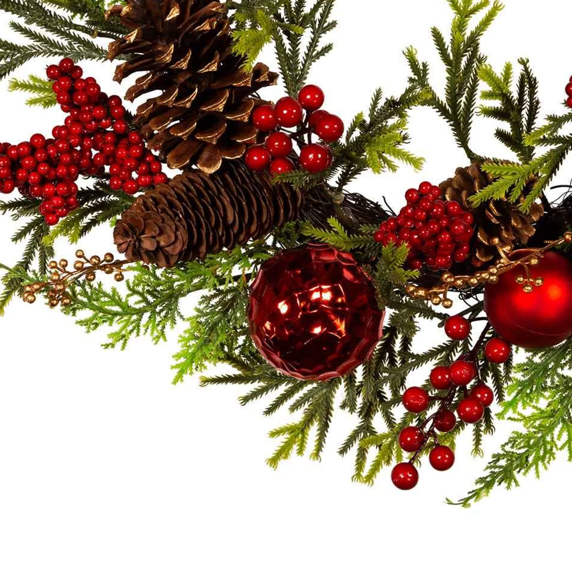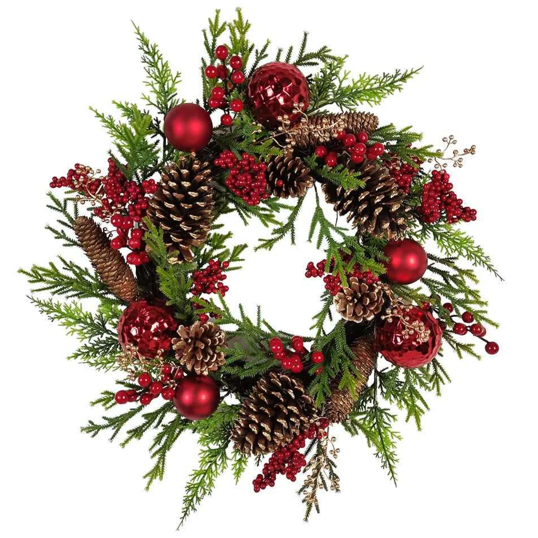 This 24-Inch Un-Lit Decorated Green Rattan Wreath Is A Beautiful Way To Add To Any Home Or Holiday Decor. This Wreath Is Unlit And Is Decorated With Red Ball Ornaments, Pinecones, And Red Berry Clusters For A Festive Touch.The Contrast Of The Red And Green Makes This Wreath Really Stand Out.
