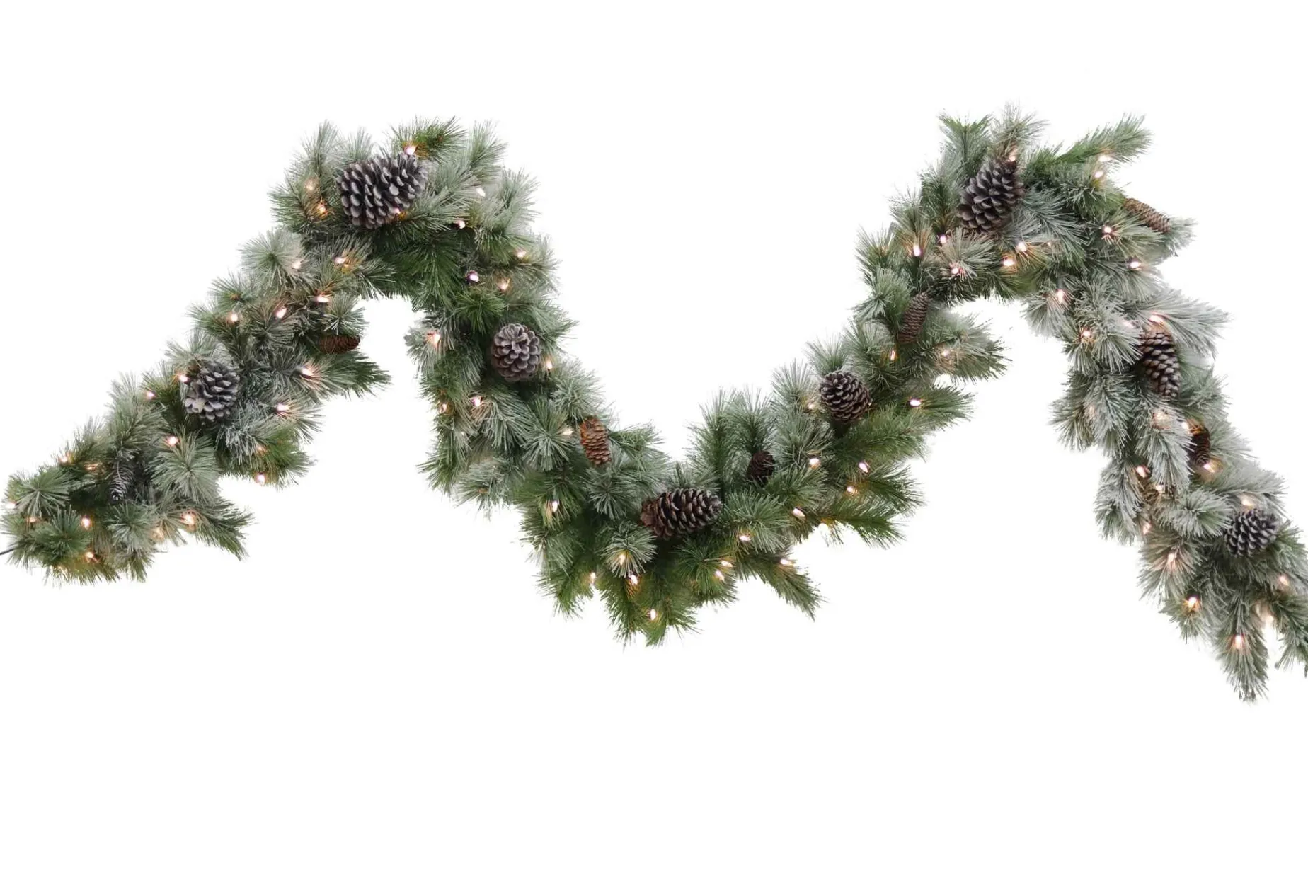 Puleo International 9Ft Flocked Schenectady Fir Garland In Clear #114-Scf-9/12C1