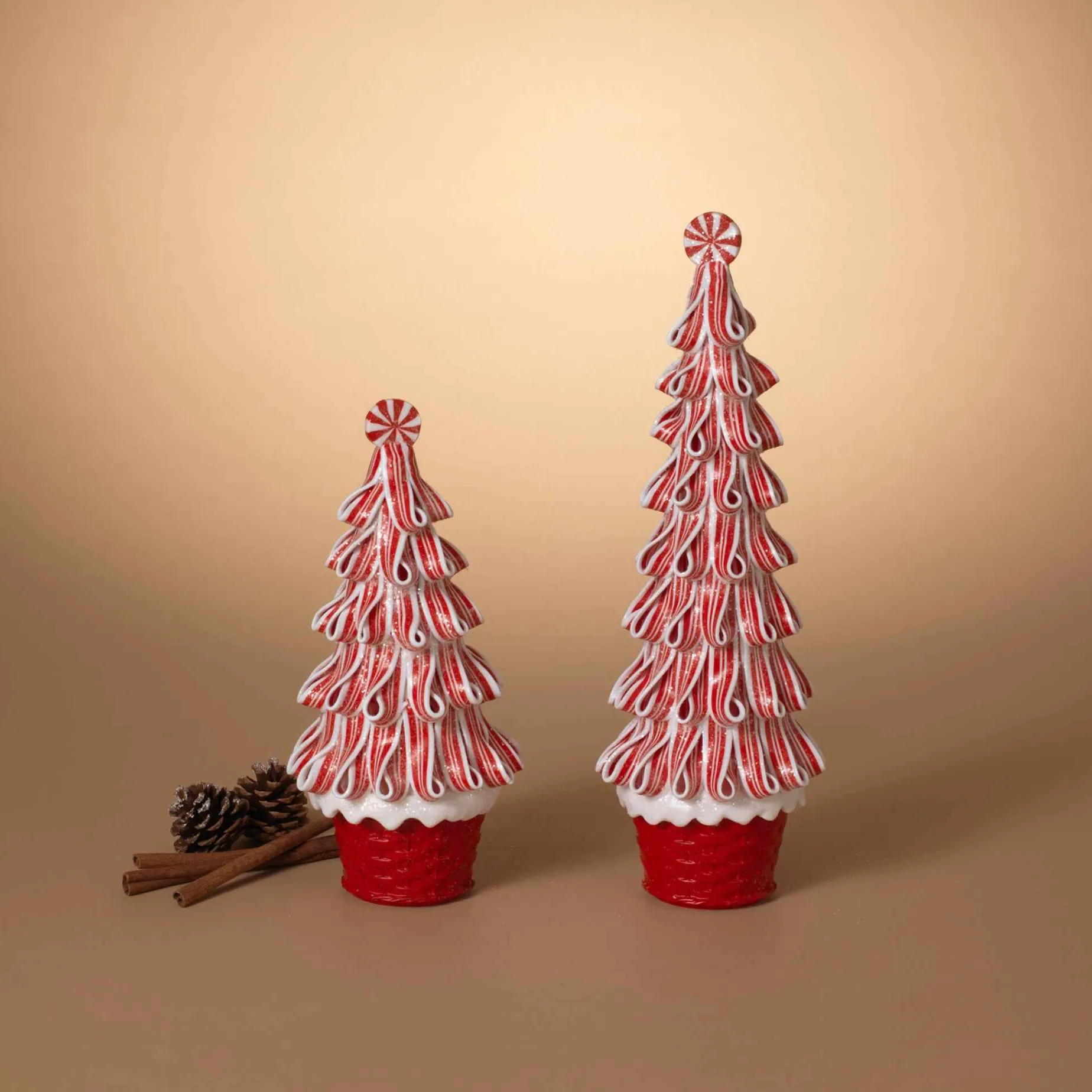 Our Set Of Two Peppermint Candy Trees Will Be A Feast Of The Eyes For All Of Your Guests. Each Peppermint Candy And Ribbon Is Artfully Crafted From High Quality Clay And Placed On The Trees And Dusted With A Fun And Shimmery Glitter On Top Of A Cupcake Base. Display This Set Of Timeless Christmas Tree Decorations Together To Make A Statement, Or Spread The Trees Throughout Your Space For Fun Pops Of Traditional Red And White Holiday Cheer.