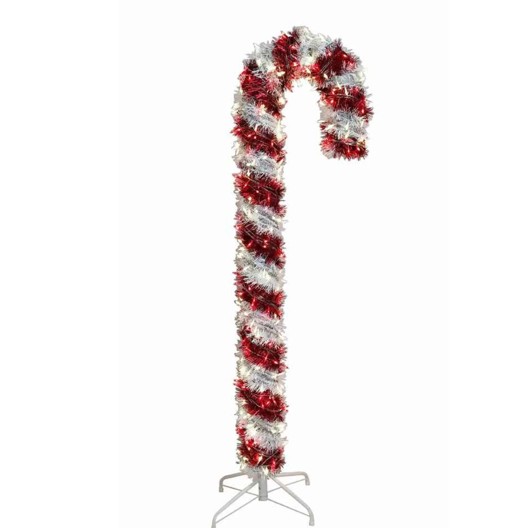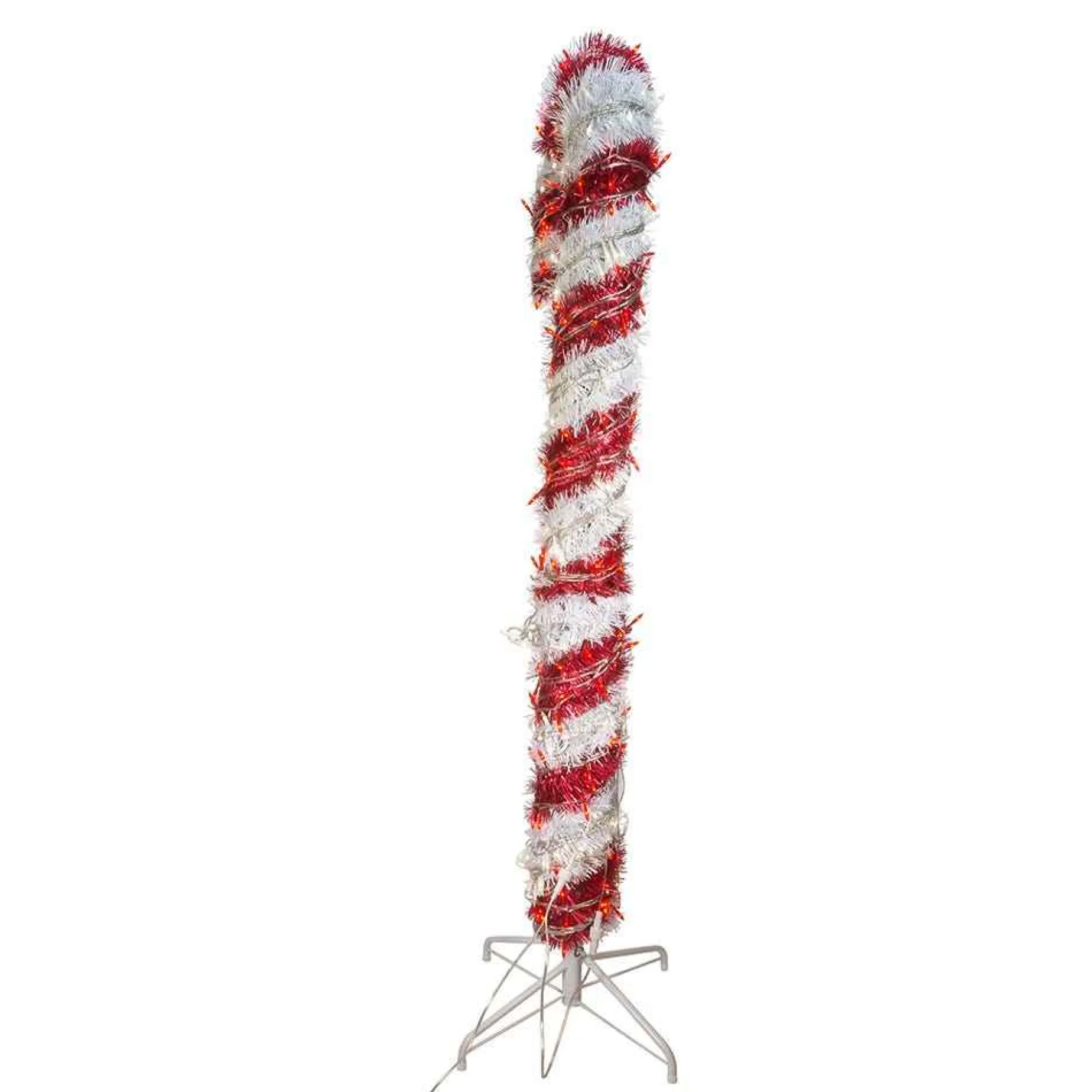 Kurt Adler’s 5-Foot Pre-Lit Red And White Led Tinsel Candy Cane Is A Fun And Festive Addition To Any Home Or Office Holiday Decor. This Red And White Candy Cane Features 200 Red And 200 Warm White Led Lights On A Clear Wire And Stands 5 Feet Tall With A White Metal Folding Base.