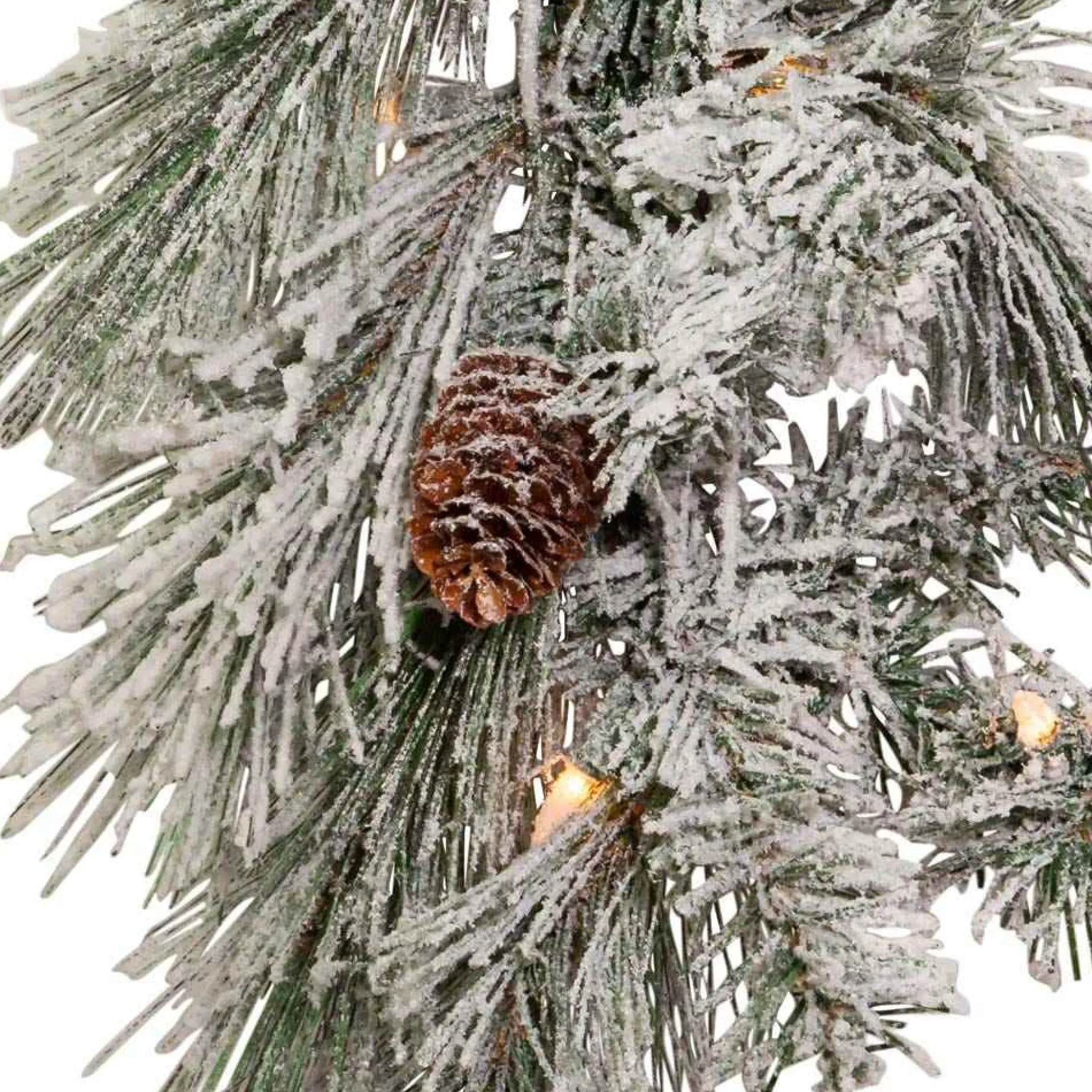 This 9-Foot Pre-Lit Clear Incandescent Flocked Garland From Kurt Adler Is A Beautiful And Festive Addition To Any Holiday Decor. Perfect For Decorating Your Home, Its Design Is Faux Snow Green Flocked With Pinecones And Is Pre-Lit With 50 Clear Incandescent Lights Which Includes A Ul Plug And 120 Tips.
