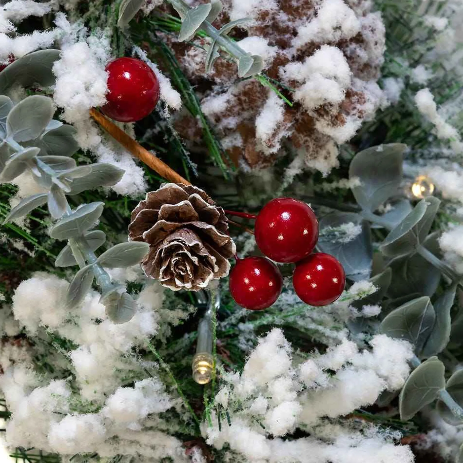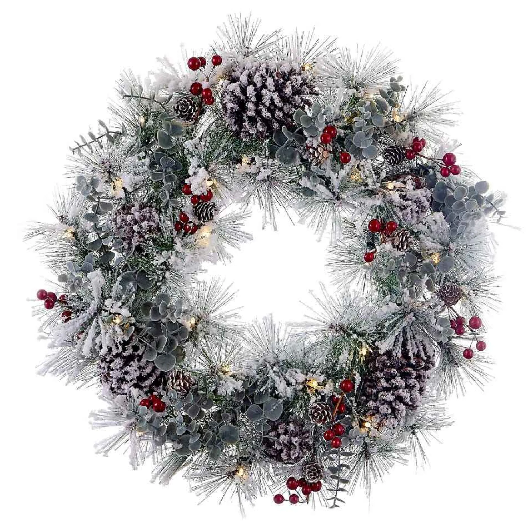 This 18-Inch Battery-Operated Flocked With Red Berries And Pinecones Led Wreath From Kurt Adler Is A Lovely Addition To Any Holiday Decor. Features A Classic Green Wreath Adorned With Bright Red Berries, And Large Pinecones. This Wreath Is Flocked Giving A Faux Snow Effect. Perfect For Hanging On Doors To Welcome Visitors!