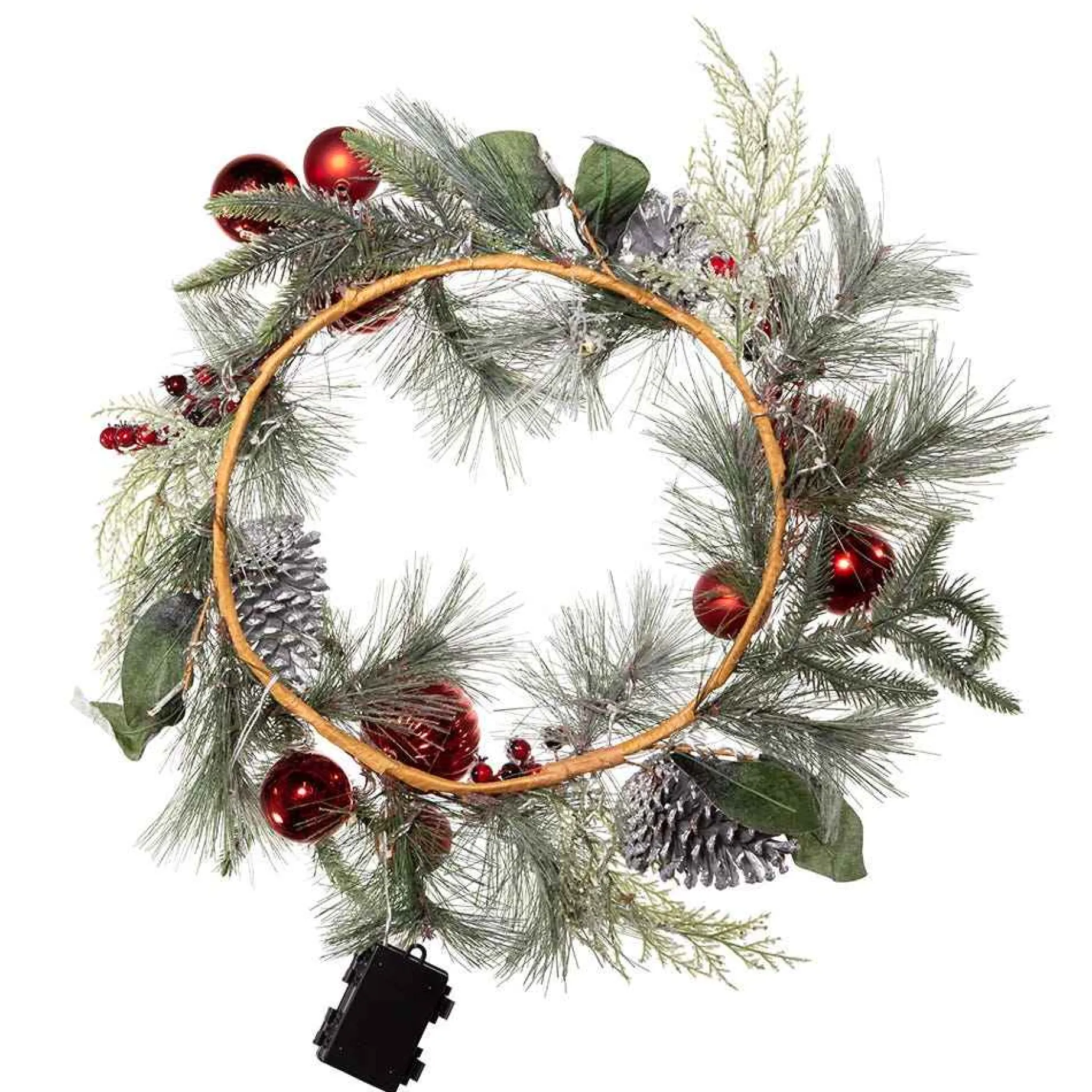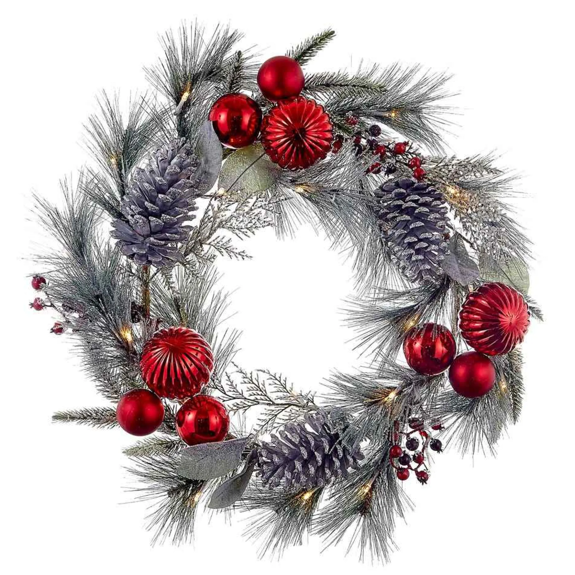 Kurt Adler 22-Inch Battery-Operated Red Berries, Balls And Silver Pinecone Wreath