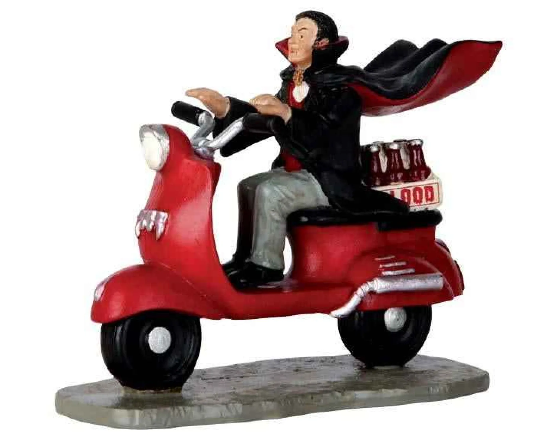What’s A Party Without Refreshments? This Vampire Had To Go Get Some Fresh Blood For His Halloween Party Tonight! Riding In His Red Scooter And His Cape Flowing In The Wind With His Pack Of Fresh Blood In The Back, This Vampire Is Ready For Some Fun Tonight With All Of His Friends!